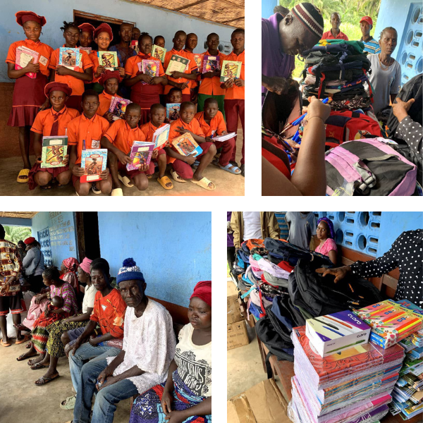 The Mayor of Freetown Yvonne Aki-Sawyerr on Sunday 7th September 2025 donated learning materials to over two hundred and fifty school going children of R.C Primary and Junior Secondary School at Kagbankona village, Biriwa Chiefdom, Bombali District. The donation of school bags, exercise books, pens, pencils, erasers and chalk was made in the presence of the village Chief, head teachers, parents and pupils of the school.